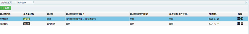建立盤(pán)點(diǎn)計(jì)劃,字段內(nèi)容為:盤(pán)點(diǎn)名稱(chēng),盤(pán)點(diǎn)范圍(使用部門(mén)、資產(chǎn)分類(lèi)、資產(chǎn)位置)。